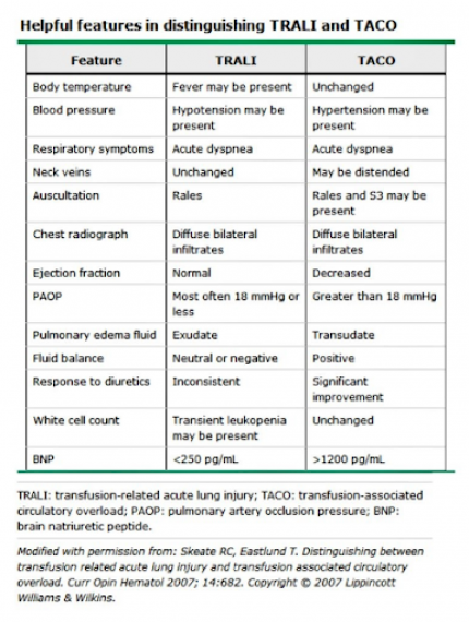 Silvergleid AJ. Transfusion-associated circulatory overload (TACO). Post TW, ed. UpToDate. Waltham, MA: UpToDate Inc.