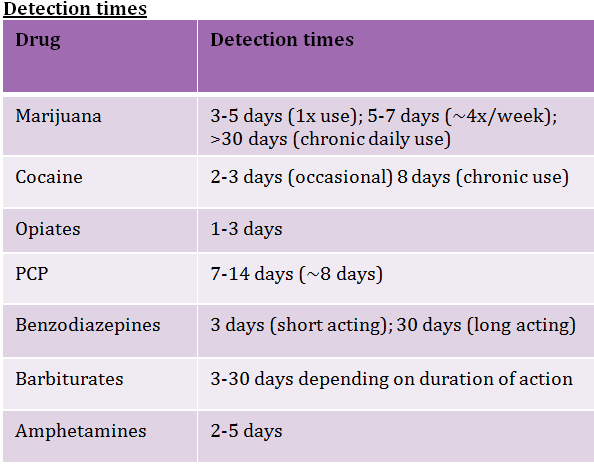 -Moeller KE, Kissack JC, Atayee RS, Lee KC. Clinical Interpretation of Urine Drug Tests: What Clinicians Need to Know About Urine Drug Screens. Mayo Clin Proc. 2017 May;92(5):774–96.