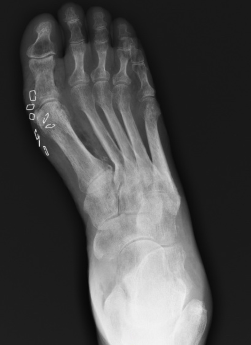 - local symptoms: excruciating pain (may be absent in neuropathic patients) signs of inflammation, crepitus, skin discoloration, malodor, purulent or serosanguinous drainage, bullae