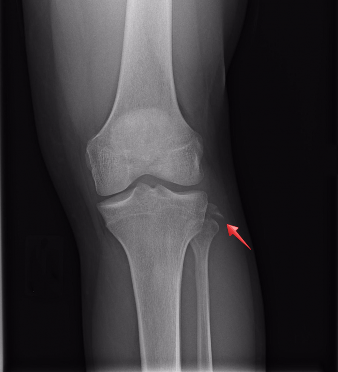 • Avulsion fracture at the proximal fibula at the insertion site of the arcuate ligament; 90% of fractures have disruption of the lateral collateral ligament