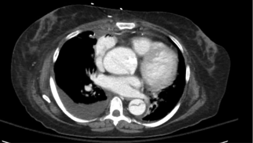 A 45 you female presents complaining of abdominal pain and back pain. She apears uncomfortable and she has hypertension on exam, otherwise vital signs are normal and exam is unremarkable. A CT is completed. What's the diagnosis? Scroll down for answer.